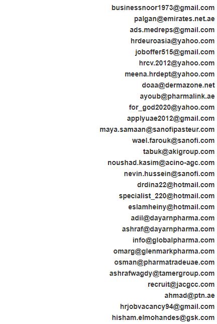 ايميلات شركات الادوية بالامارات برواتب عالية جدا وبدلات قدم سيرتك الذاتية الان