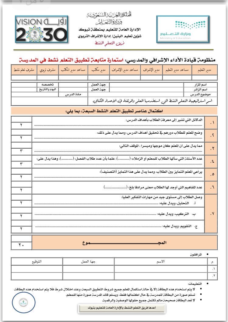محمد الزارع على تويتر أهمية بطاقة التعلم النشط يحصل المعلم على 130 نقطة كحد أقصى و105 كحد أدنى مقابل تنفيذه الكامل لبنود الاستمارة تضاف لدرجاته بالمنظومة عند حصول المعلم على أربع