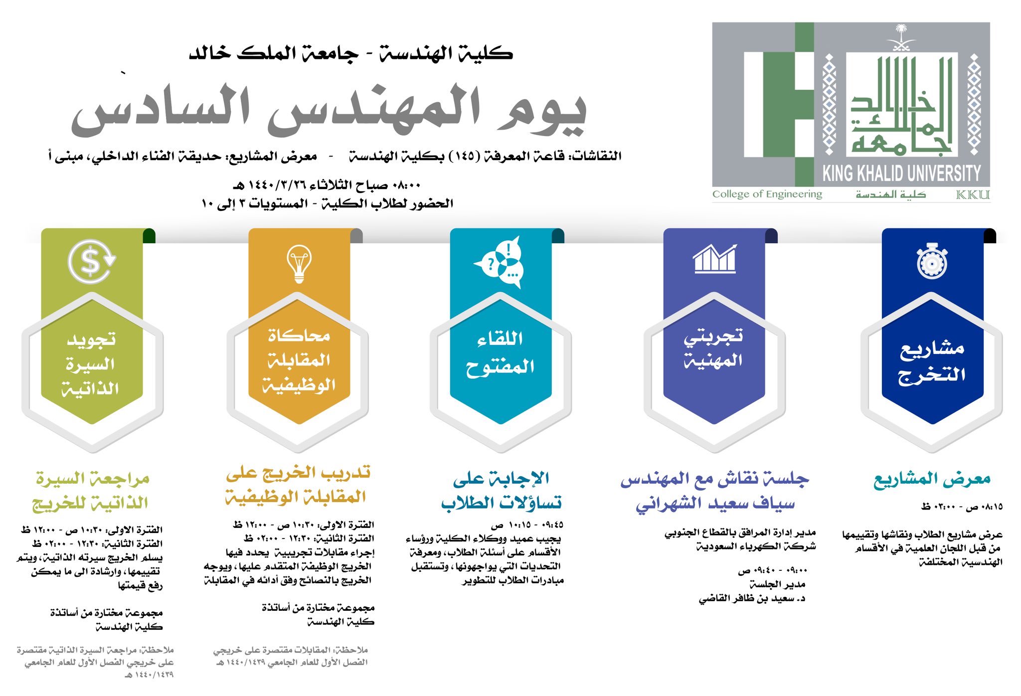 كـ لـ يـ ــة ا لــ هـ نـ ـد سـ ـة On Twitter كلية الهندسة بـ جامعه الملك خالد تدعو طلابها لحضور فعاليات يوم المهندس السابع