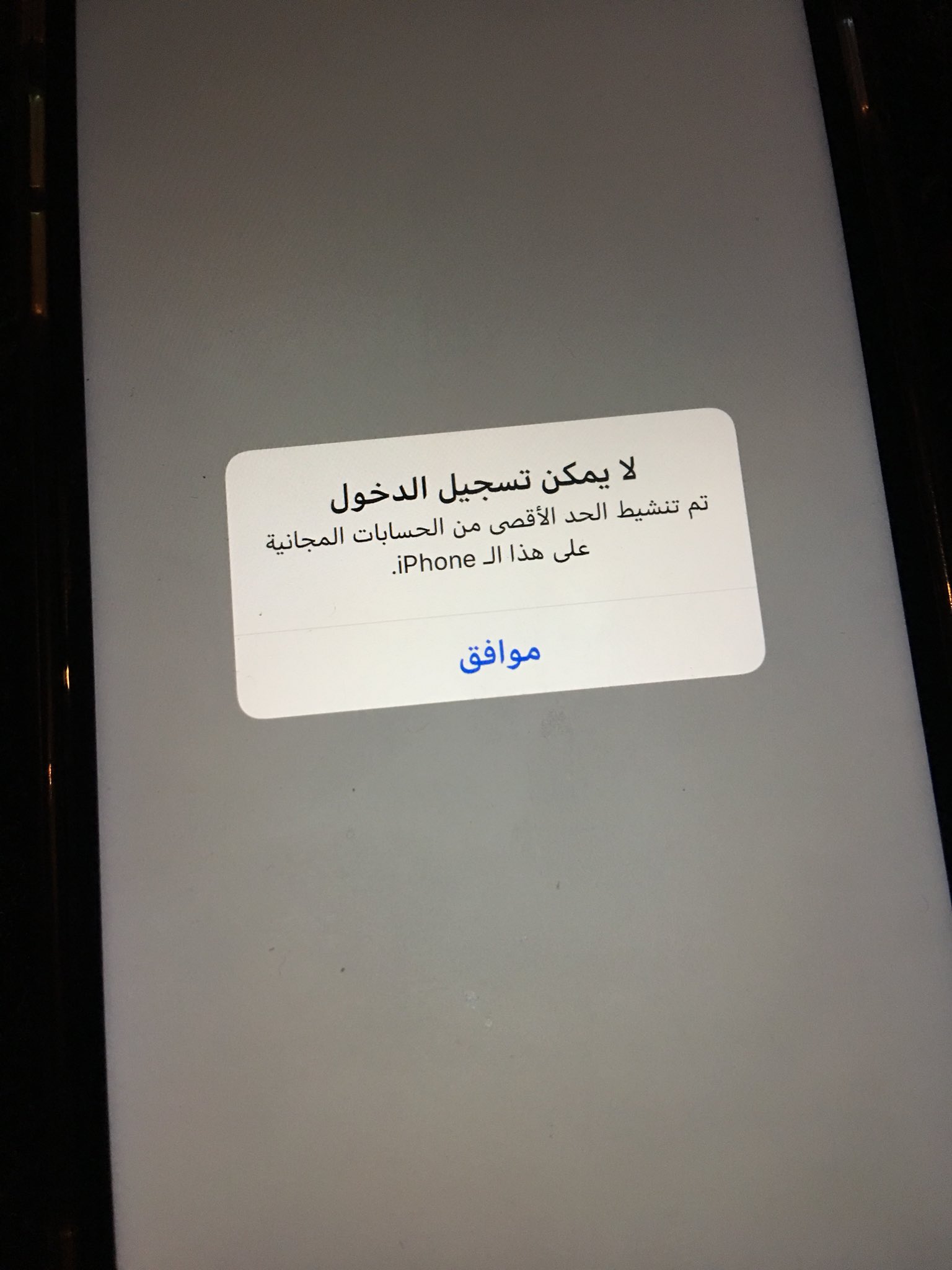 حل مشكلة تم تفعيل الحد الاقصى لعدد الحسابات المجانية على هذا الايفون