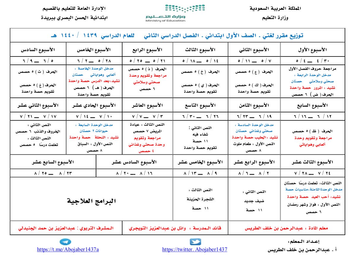 عـبـ ـد الر حـ ـمـ ـن الطـ ـريـ ـس Twitterren الموسوعة الشاملة للصف الأول الصفوف الأولية وسائل تعليمية توزيع القران الكريم لغتي الصف الأول الابتدائي الفصل الدراسي الثاني ١٤٤٠ هـ ملفات Word Pdf قابلةللتعديل والطباعة للتحميل Https