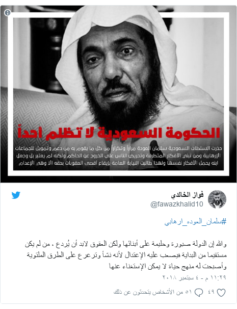 بعد نشر مكالمته الصوتية من داخل سجنه تضامن واسع على تويتر مع سلمان العودة بوابة الشرق الإخبارية