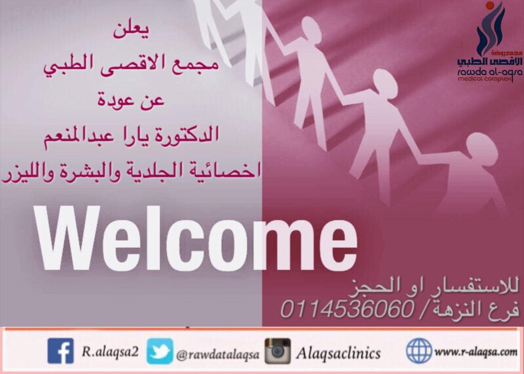عيادات الأقصى الطبية Sur Twitter يعلن مجمع الاقصى الطبي عن عودة الدكتورة يارا اخصائية الجلدية والبشرة والليزر للاستفسار اوالحجز النزهة 0114536060 Http T Co R60opkrd3q