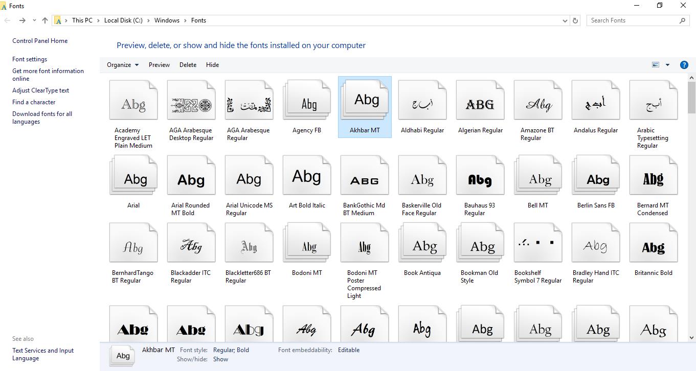 تثبيت وحذف الخطوط في ويندوز الطريق السهل
