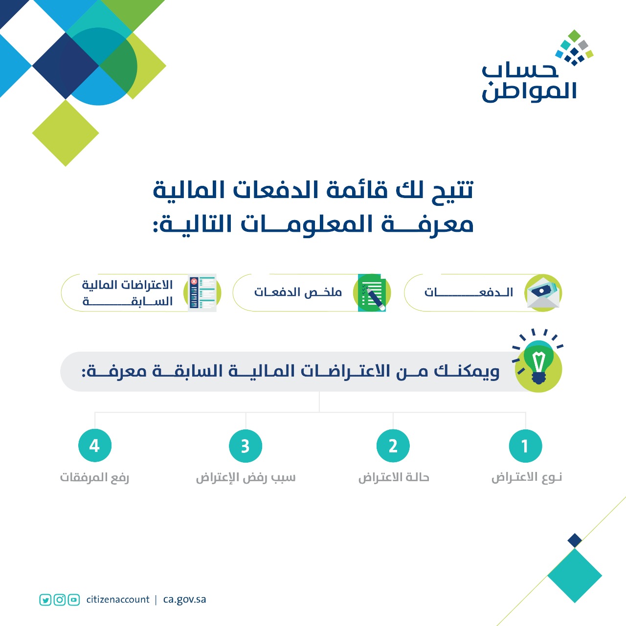 حساب المواطن On Twitter يمكنك متابعة اعتراضك على مبلغ الدعم من خلال قائمة الدفعات المالية في برنامج حساب المواطن