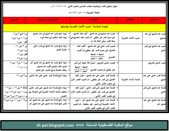 تحليل محتوى كتاب الرياضيات للصف الخامس الفصل الثاني المكتبة الفلسطينية الشاملة