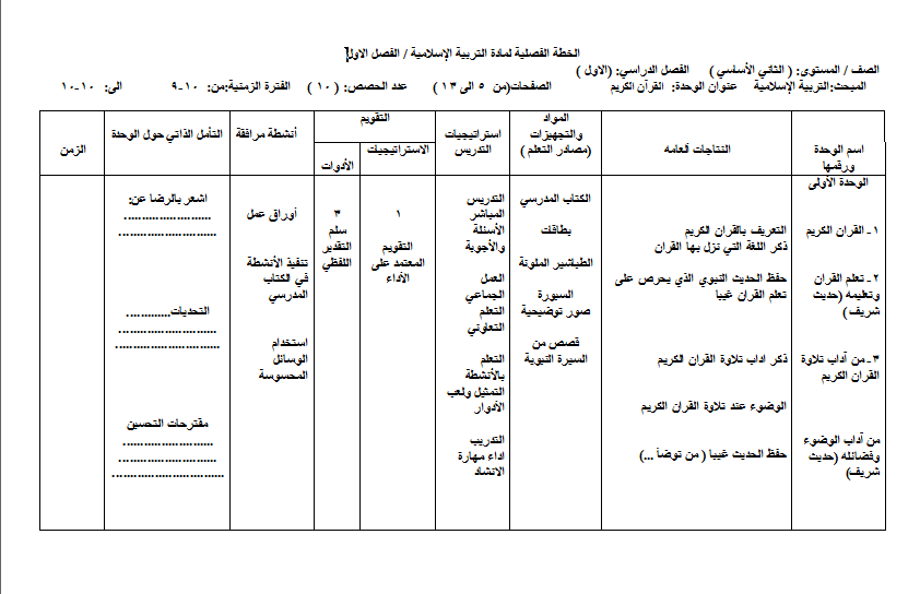 نموذج Word الخطة الفصلية تحليل المحتوى لمادة التربية الاسلامية الصف الثاني الفصل الاول 2019 منتديات صقر الجنوب
